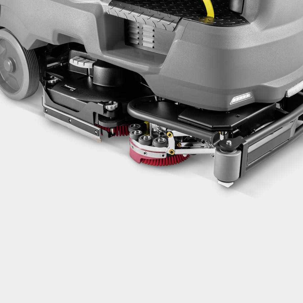 Autolaveuse aspirante autoportée B 150 R avec 2 brosses-disques, 90 cm de largeur de travail et suceur d'aspiration de dernière génération pour un résultat de nettoyage optimal et 7 200 m²/heure de rendement surfacique.