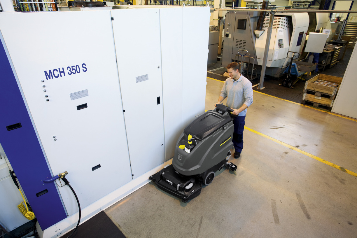 L'autolaveuse aspirante autotractée B 60 W Bp avec traction, batterie sans maintenance (24 V, 170 Ah) et système à clé KIK offre du confort combiné à un maniement facile et sécurisé. Avec la tête de brossage à disques D 65 (largeur de travail 65 cm) et une vitesse de rotation des brosses de 180 tr/min, la machine est idéale pour les sols non structurés avec un rendement surfacique de 2 500 mètres carrés. La pression de contact des brosses est réglable et la tête ainsi que les brosses sont rapides à monter et à remplacer. Le mode eco!efficiency prolonge considérablement l'autonomie de la batterie (max. 3 h) tandis que le système prévu pour le nettoyage du réservoir d'eau sale facilite cette opération après le nettoyage du sol. À cela s'ajoutent la fonction Auto-Fill pour un remplissage simple et rapide du réservoir d'eau propre ainsi que le suceur d'aspiration en V d'une largeur de travail de 900 millimètres pour une aspiration sans traces de l'eau sale, y compris dans les virages. 0