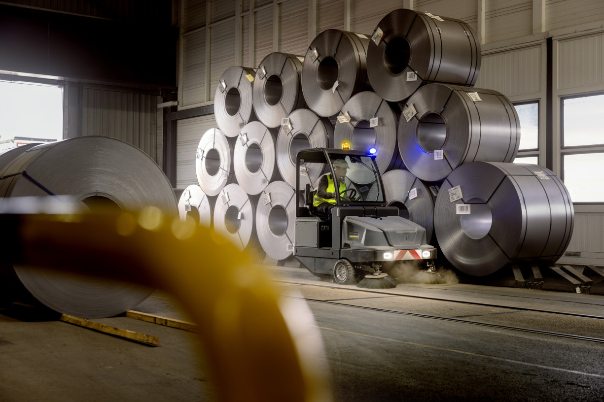 Robuste, durable et idéale pour les utilisations en cas de quantités importantes de saleté et de poussière à l'extérieur et à l'intérieur : la balayeuse industrielle KM 130/300 R I Bp de Kärcher. Sa grande cuve à déchets et le puissant moteur permettent également de nettoyer pendant une durée maximale de 3,5 heures tandis que le cadre métallique solide et protecteur ainsi que la commande simple par levier sont parfaitement adaptés aux conditions rudes en milieu industriel. Lorsqu'elle est équipée de série d'un système à filtre à poches performant et d'un réglage de la vitesse de rotation des brosses latérales en option pour un guidage optimal des matières balayées vers le rouleau-balai avec un minimum de tourbillons de poussière, la KM 130/300 R I Bp garantit un balayage pratiquement sans dégagement de poussière, même dans les environnements très poussiéreux. Pour une facilité d'utilisation élevée, l'appareil dispose en outre d'un siège confort, de coffres de rangement pratiques, et de voyants de contrôle à LED pour l'état de fonctionnement. Des roues anticrevaison avec bandage en caoutchouc plein, des phares avant à LED et un gyrophare assurent la sécurité dans l'environnement de travail immédiat. D'autres kits disponibles renforcent encore la sécurité, faisant de la machine une véritable spécialiste du nettoyage. Les batteries et le chargeur ne sont pas inclus.