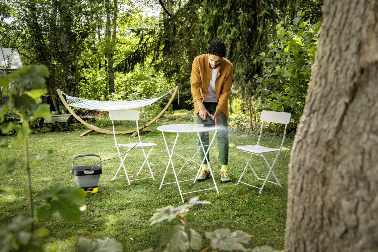 La brosse de nettoyage est idéale pour décoller et rincer rapidement et efficacement les saletés tenaces, par exemple une pellicule collante de pollen sur le mobilier de jardin ou les salissures incrustées. L'association du jet sous pression et des poils garantit un pouvoir nettoyant particulièrement efficace, y compris lors d'un rapide nettoyage d'appoint. Ses domaines d'utilisation sont par exemple le mobilier de jardin, les vélos et autres équipements pour l'extérieur. Le montage de la brosse se fait directement sur le pistolet. Avec son profil antidérapant et la forme ergonomique, la brosse offre un toucher agréable et une bonne prise en main pour un travail sécurisé et sans fatigue. Étant donné que l'eau n'est dispensée que lorsque la gâchette de l'appareil est actionnée, la consommation d'eau peut être régulée très efficacement et individuellement. De cette façon, la batterie est ménagée par la même occasion. La brosse de nettoyage est compatible avec tous les nettoyeurs mobiles extérieurs OC 3.