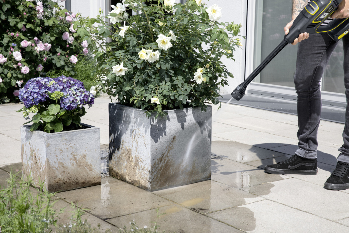 La lance Multi Jet portable regroupe 5 types de jet dans une seule lance d'arrosage : jet crayon, jet plat, jet de rinçage, jet nuage et jet d'arrosage. La lance multijet est ainsi parfaitement adaptée à diverses applications. Le choix du jet adéquat se fait très simplement en tournant la tête de buse. Le raccord Quick Connect entre la tête de buse et le tube rallonge permet de fixer rapidement et facilement un autre accessoire pour nettoyeur portable d'une seule main. Le tube rallonge favorise un travail ergonomique et offre une bonne protection contre les éclaboussures grâce à la distance supplémentaire. La MJ 24 portable est compatible avec le nettoyeur pression sans fil KHB 5 Battery.