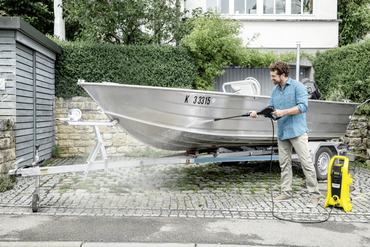 Vous n'avez pas d'alimentation secteur à portée de main ? Pas de problème ! Les nouveaux appareils sans fil de la plateforme de batterie Kärcher Battery Power 36 V permettent un nettoyage flexible. Mobilier de jardin, poubelles, voitures compactes ou bateaux – le nettoyeur sans fil haute pression K 2 Battery est idéal pour toutes les tâches de nettoyage mineures à l'extérieur de la maison. Grâce aux modes standard, boost et détergent, les divers objets à nettoyer peuvent être traités avec une pression parfaitement ajustée. Pour utiliser les différents niveaux de pression, il vous suffit de changer de lance. La possibilité d'utilisation d'un flexible d'aspiration Kärcher pour aspirer l'eau depuis des sources d'eau alternatives offre une flexibilité encore plus grande. Grâce à la technologie temps réel innovante, l'afficheur LCD de la batterie indique à tout moment la capacité de la batterie. La capacité de la batterie est indiquée en minutes pendant le travail et la charge puis en pourcentage lors du stockage. La batterie interchangeable Lithium-ion endurante et puissante ainsi que le chargeur sont inclus et compatibles avec tous les appareils de la plateforme de batterie Kärcher Battery Power 36 V.
