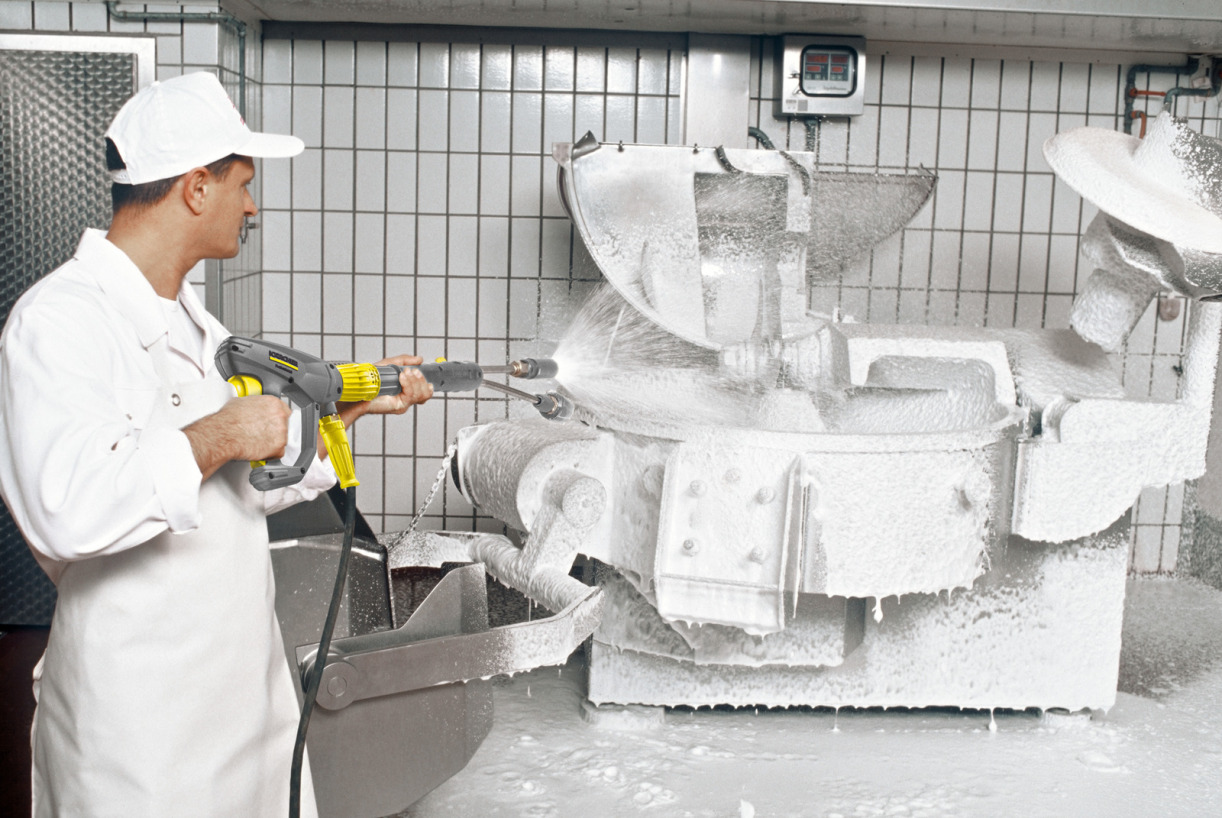 Robuste, performant et facile à prendre en main : ce nettoyeur haute pression stationnaire à eau froide pour une arrivée d'eau jusqu'à 85 °C avec pompe de gavage est optimal pour une utilisation continue dans l'industrie agroalimentaire. Il s'illustre par un débit de 800 l/h et une pression de 180 bar. Le nettoyeur haute pression comprend un réservoir de stockage d'eau avec protection contre l'entartrage et une sécurité manque d'eau avec indicateur de réservoir vide pour la protection contre l'entartrage. Par ailleurs, il inclut une aspiration du détergent avec vanne de dosage et indicateur de réservoir vide. Il séduit par sa longévité grâce à une pompe à vilebrequin robuste avec culasse en laiton et à un cadre robuste et à un boîtier en acier inoxydable. Le moteur électrique lent à 4 pôles garantit une longue durée de vie et la surveillance électronique assure une exploitation sécurisée. L'utilisation s'avère confortable grâce au grand bouton rotatif ; l'installation et la maintenance sont tout aussi faciles et conviviales. La machine est fournie sans accessoires ; ces derniers peuvent être sélectionnés pour chaque point de prélèvement : manomètre, compteur d'heures, aspiration pour deuxième détergent, décompression automatique et différentes télécommandes.