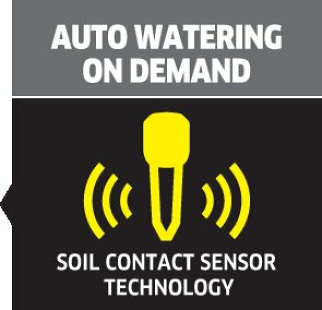 Le SensoTimer ST 6 eco!ogic arrose en fonction du taux d'humidité et des besoins. Le capteur inclus mesure le taux d'humidité du sol et l'envoie au SensoTimer par radio. La valeur d'humidité souhaitée se règle facilement grâce à 5 niveaux. Lorsque la valeur sélectionnée n'est plus atteinte, l'arrosage démarre automatiquement à la prochaine heure programmée. Grâce au module de commande amovible et aux 5 touches de commande, la programmation est un jeu d'enfants. Il est possible de programmer jusqu'à deux heures d'arrosage (durée d'arrosage max. : 90 min). La fonction eco!ogic permet en outre une temporisation de l'arrosage de un à sept jours. Un arrosage manuel est possible à tout moment. Par simple pression sur un bouton, vous pouvez suspendre l'arrosage programmé pendant 24 h. Le SensoTimer ST 6 eco!ogic est compatible avec tous les systèmes clic connus. Le nez de robinet et le préfiltre sont inclus, contrairement à la pile 9 volts requise.