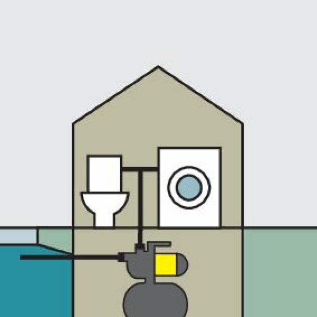 La pompe d'alimentation domestique performante BP 3.200 Home avec réservoir de compensation de pression intégré pompe l'eau non potable à travers toute la maison de manière entièrement automatique.